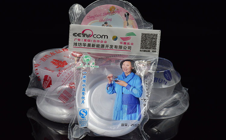 壽百康一次性航空水晶餐具一次使用,不用清洗,高溫生產,無菌包裝,質地輕盈、抗擊撞力、綠色環保等特點,可抗100℃熱水,不變形不滲漏等特點。屬一次性使用餐具,能有效杜絕傳染疾病經不潔餐具的交叉感染,防止病從口入!讓消費者“看著舒心,用著放心”。是傳統消毒餐具替代產品。